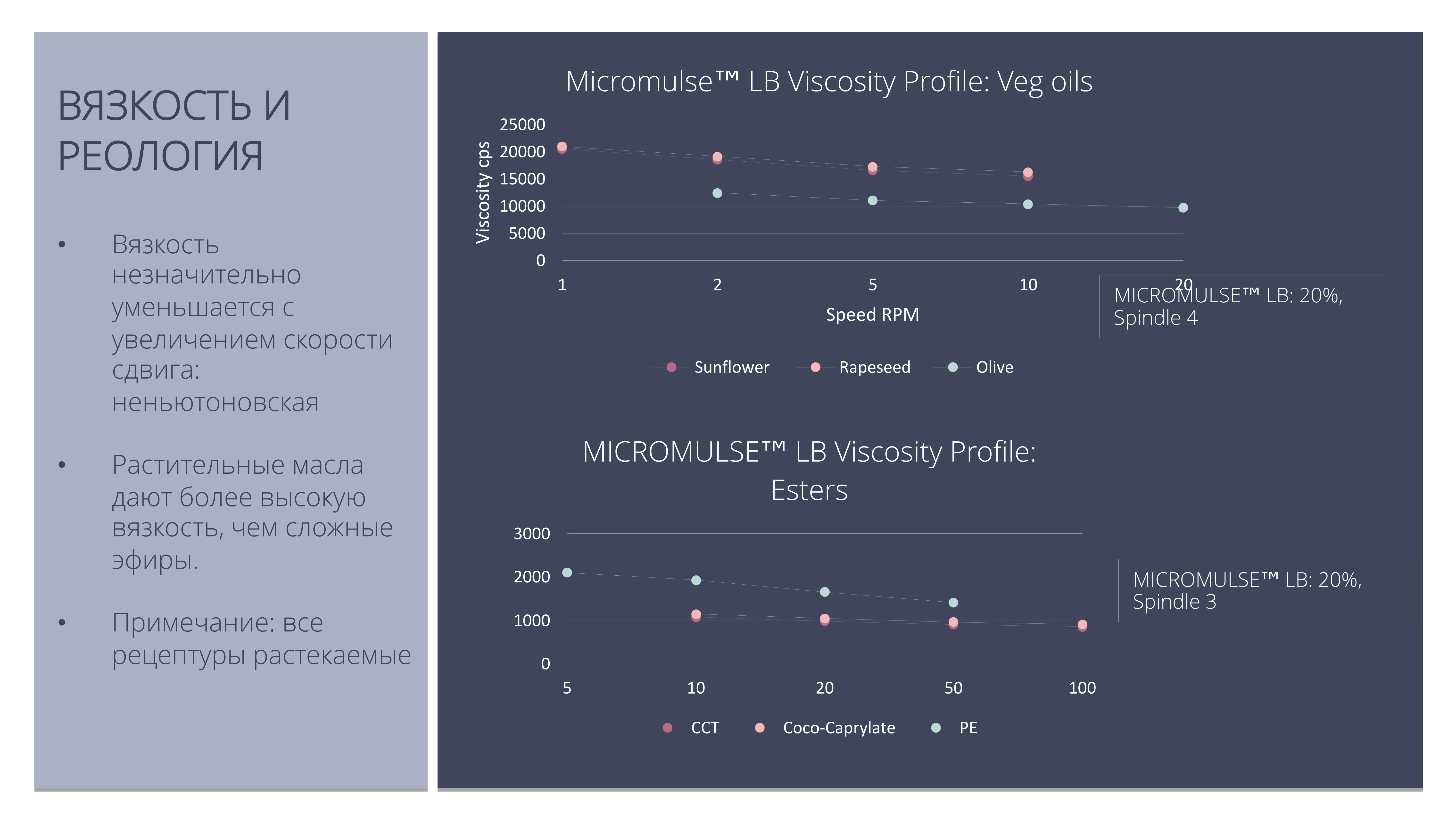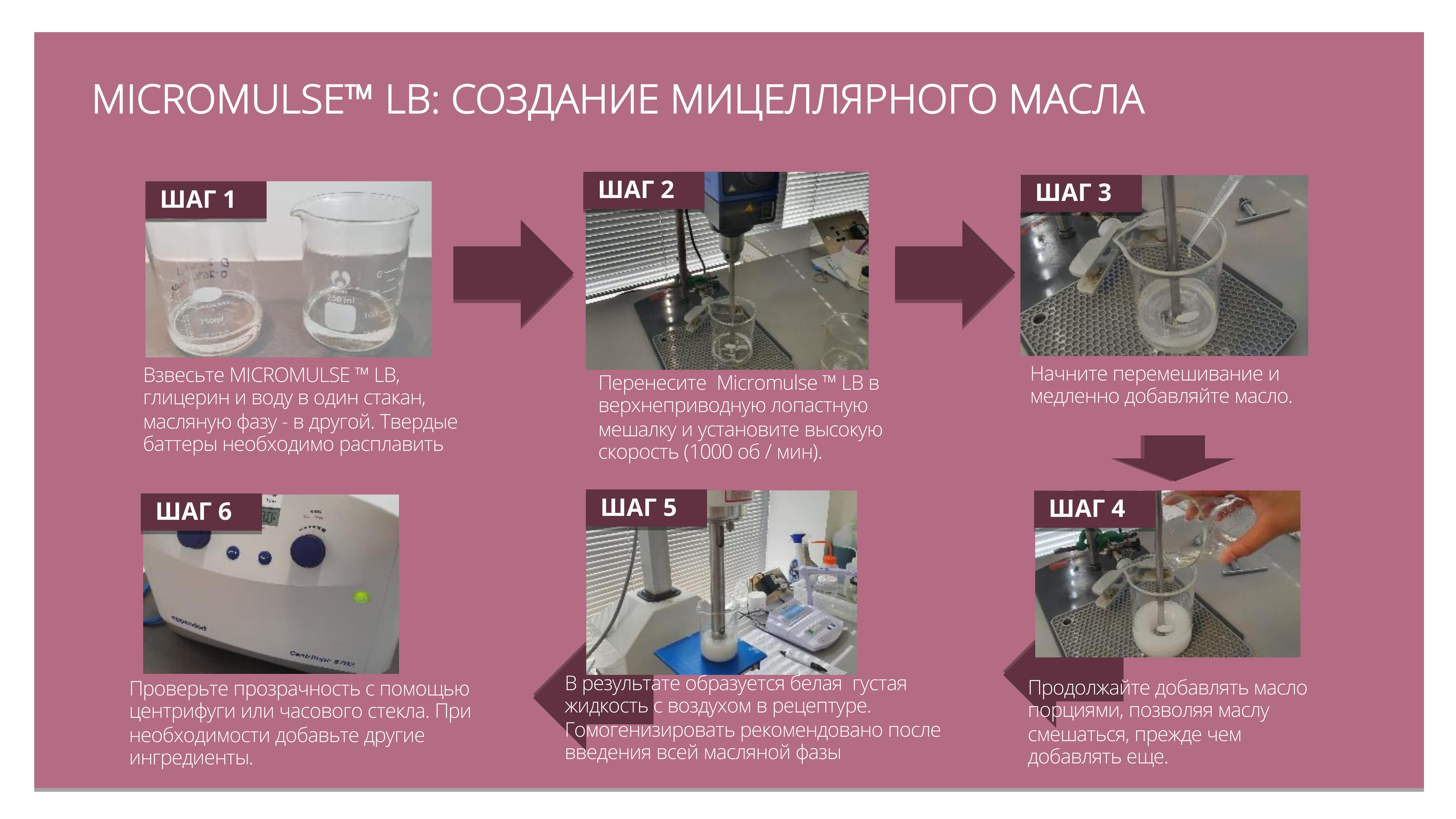 Продукты на основе Micromulse LB имеют высокую очищающую и увлажняющую способность.